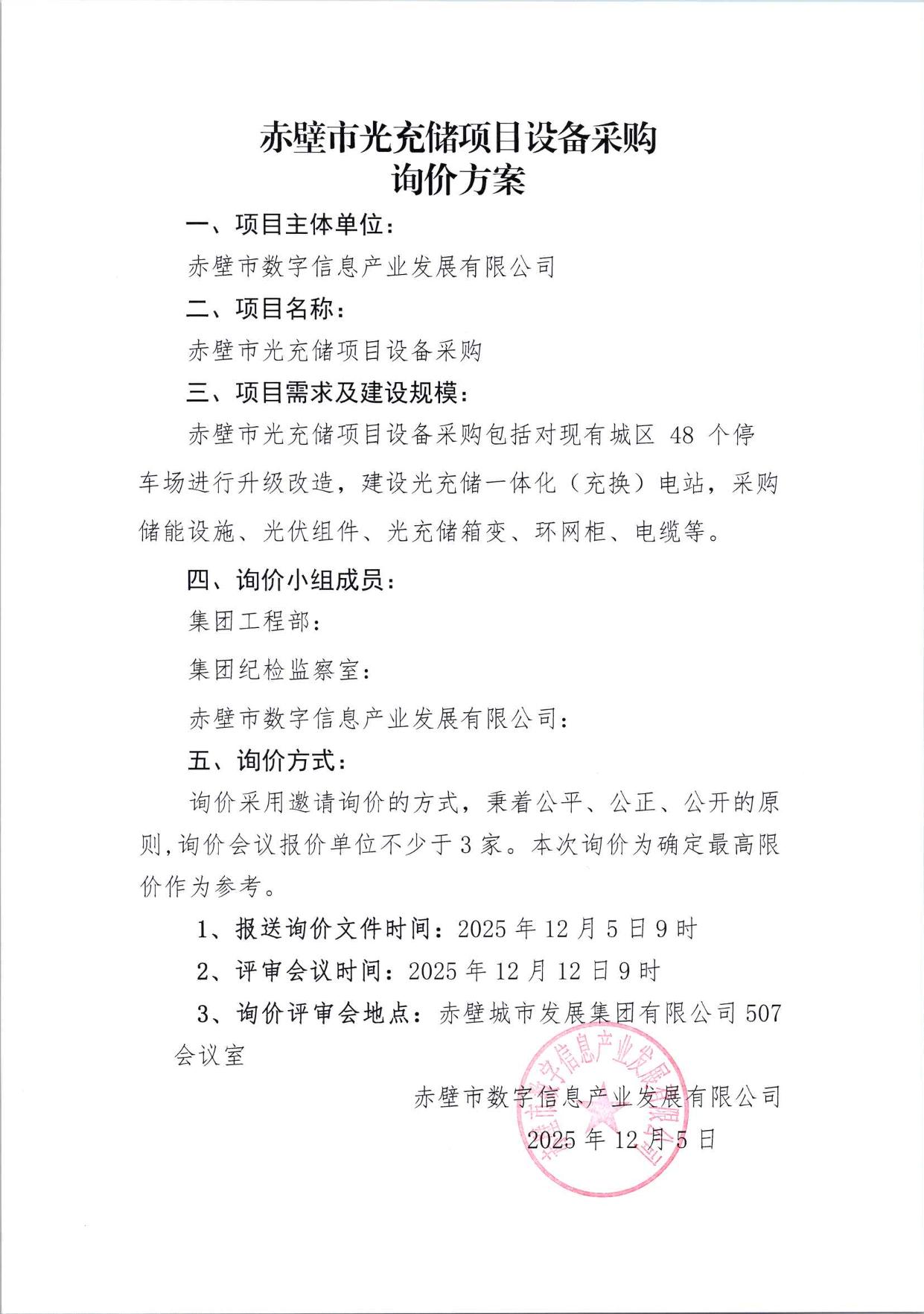 赤壁市光充儲(chǔ)項(xiàng)目設(shè)備采購(gòu)詢(xún)價(jià)公告