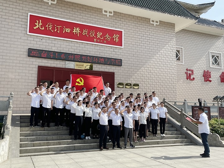 步入汀泗北伐紀(jì)念館,全體黨員干部神情肅穆,莊嚴(yán)宣誓,重溫入黨誓詞,在館內(nèi)深入了解北伐戰(zhàn)爭(zhēng)汀泗橋戰(zhàn)役,追憶紅色歷史,感悟初心使命。