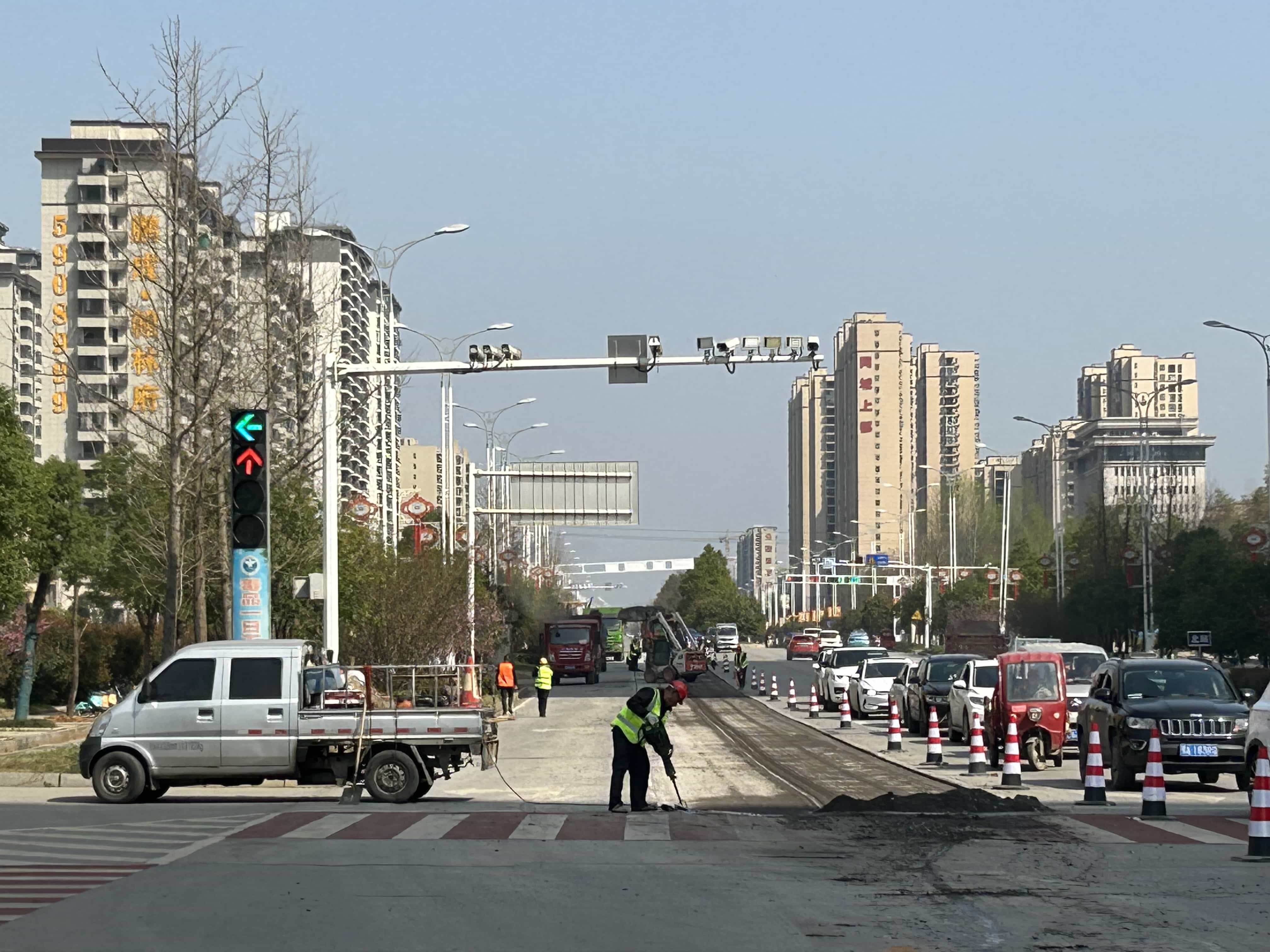 3月13日,赤壁城發(fā)集團(tuán)城投置業(yè)公司對(duì)該市蒲圻大道、建設(shè)大道以及體育館路附近塌陷路面進(jìn)行修復(fù)。